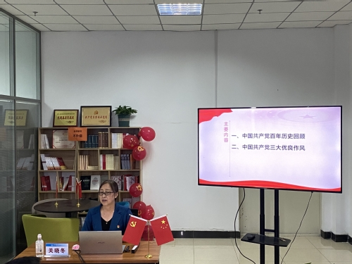 按照上级党组织要求,7月5日上午9:00思政部直属党支部与机关第四党支联合开展“千堂党课进支部”活动。副董事长关晓冬同志担任此次党课的主讲人,主讲题目为《铭记光辉历史 弘扬优良传统》。关董事长主要围绕中国共产党百年历史回顾与中国共产党三大优良作风两个方面进行讲解,梳理建党100年来重要历史时期和重要历史事件,带领我们重温百年大党如何带领中国人民实现从东亚病夫到站起来、富起来、强起来的伟大历史飞跃,从而让我们更加坚定“四个自信”,激发了全体党员的民族自豪感与自信心。