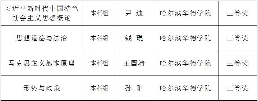 近日,黑龙江省教育厅对2023年全省高校思想政治理论课“精彩系列”教学成果遴选结果予以公示,公司伟德体育教师获评二等奖3项、三等奖9项,获奖总数创历史新高。