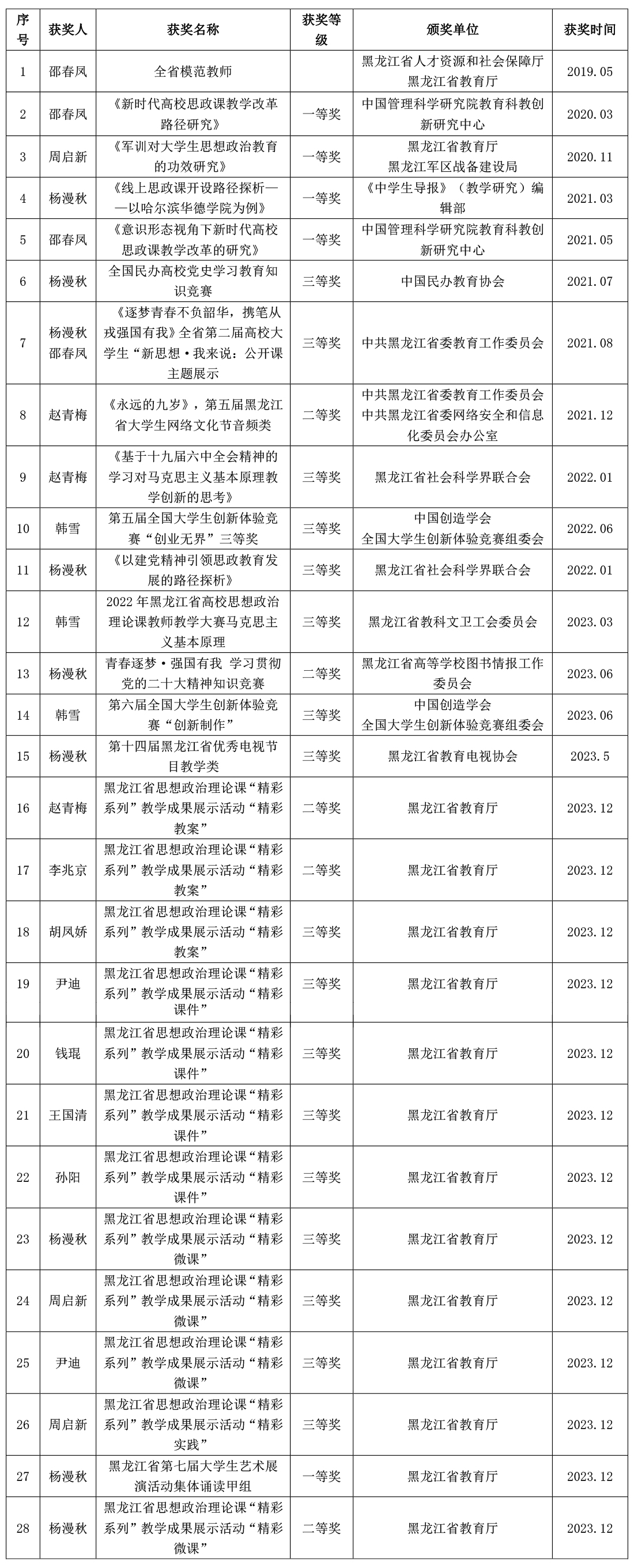 伟德体育教师思政类教学科研获奖情况统计表(2019.01-2023.12)