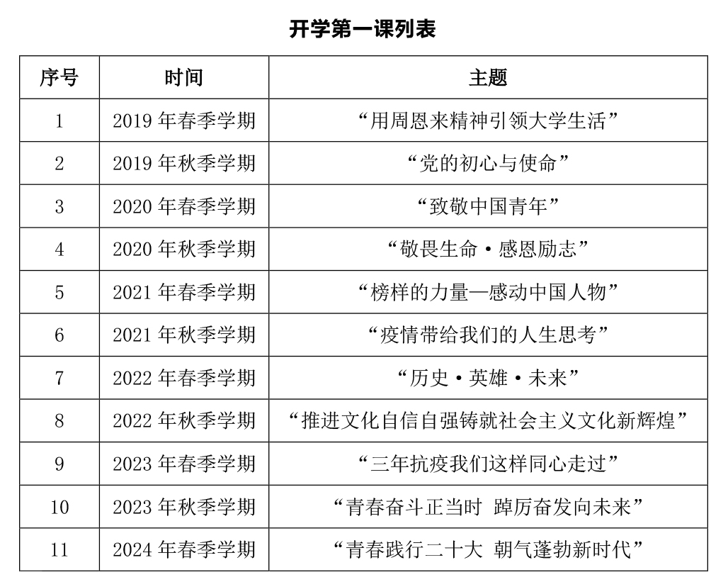 一是持续打造“开学第一课”思政课品牌。每学期开学初,公司都会组织全体思政课教师集体备课并同上开学第一 课,及时对国家最新重大理论时政热点问题进行系统解读。如:统一讲授了“中国青年的样子”“榜样的力量—感动中国人物”“疫情带给我们的人生思考”等系列专题。通过开学第一课充分发挥了思政课育人的典型示范引领作用。