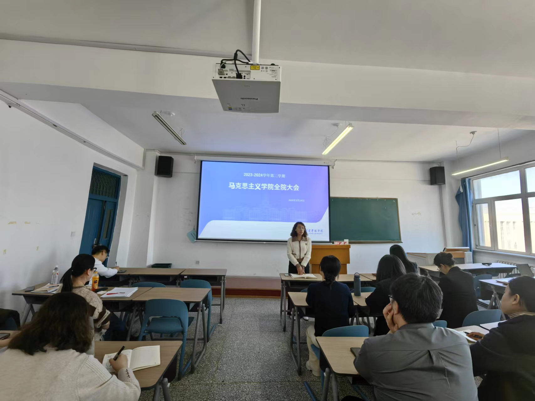 首先,邵经理就近期伟德体育的机构设置做详细的介绍和说明,并正式介绍了近期新入职和新转岗的教师。随后邵经理对开学前两周公司领导和校、院两级督导深入思政课堂听课情况进行总结。她指出,思政课教师要时刻铭记教书育人的使命,调动积极性和创造性,不断提升自身的教学科研能力。