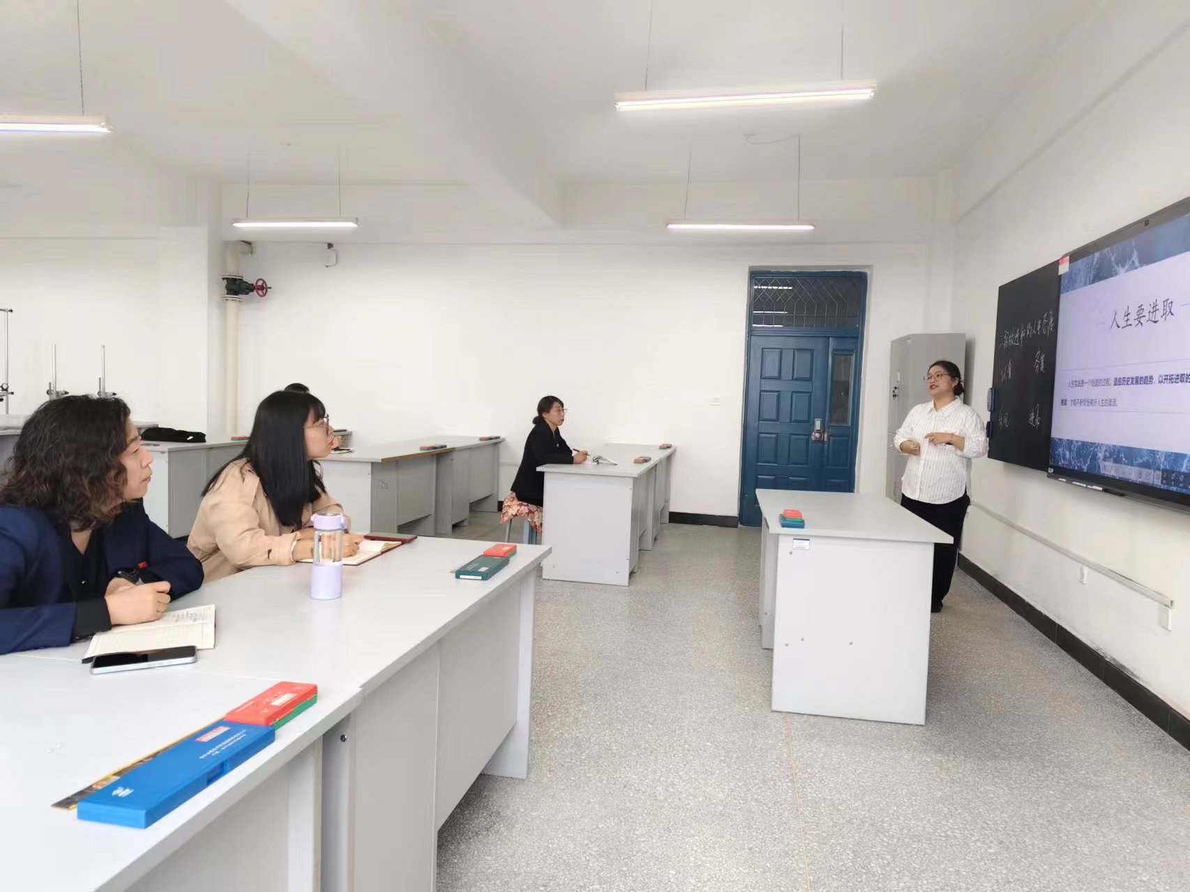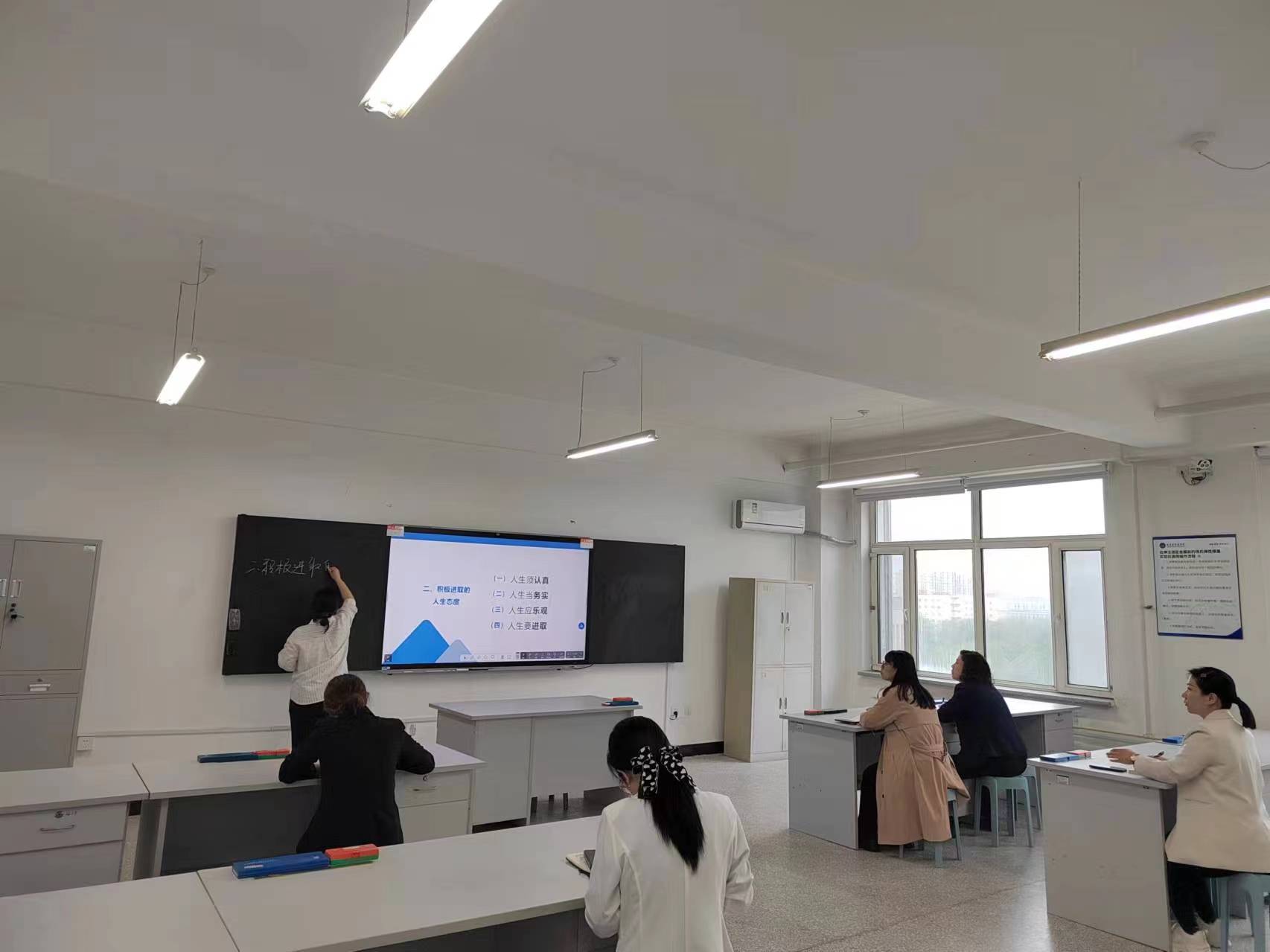 磨课教研活动由新入职教师侯伟主讲,她以“积极进取的人生态度”为主题,从为什么会出现“躺平”热?“躺平”错在哪?如何抵抗“躺平”?三个方面展示了自己的课程内容和PPT。随后,各位领导和老师就所讲课程内容和教学设计分别提出了进一步完善的意见和建议。