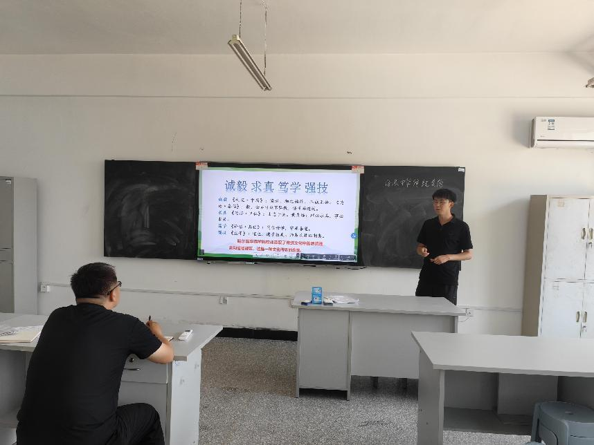 徐程、韩洋、张楠书、董一飞四位新教师围绕《思想道德与法治》课程的相关内容——“辩证对待人生矛盾”“崇尚精神是中华民族的优秀传统”“传承中华传统美德”“培养社会主义法治思维”等知识点,结合经典案例,深入浅出地讲解所授知识。试讲中他们重难点明确,课件内容丰富、表达清晰,价值导向正确。试讲结束后,听评课教师对每位试讲教师进行一一点评。在肯定教师教学基本功的同时,也进一步提出每个主题的重难点要精准定位、教学内容要精心设计、教学案例要精细选择,对员工情况要时时把握,讲课技巧要认真学习揣摩,跟有经验的教师多学习多听课等建议。评课小组教师的指导,对四位新教师的教学有很大提升和帮助。为帮助这些新教师尽快胜任教学任务,下学期开学初,教研室将再次进行试讲、磨课活动。