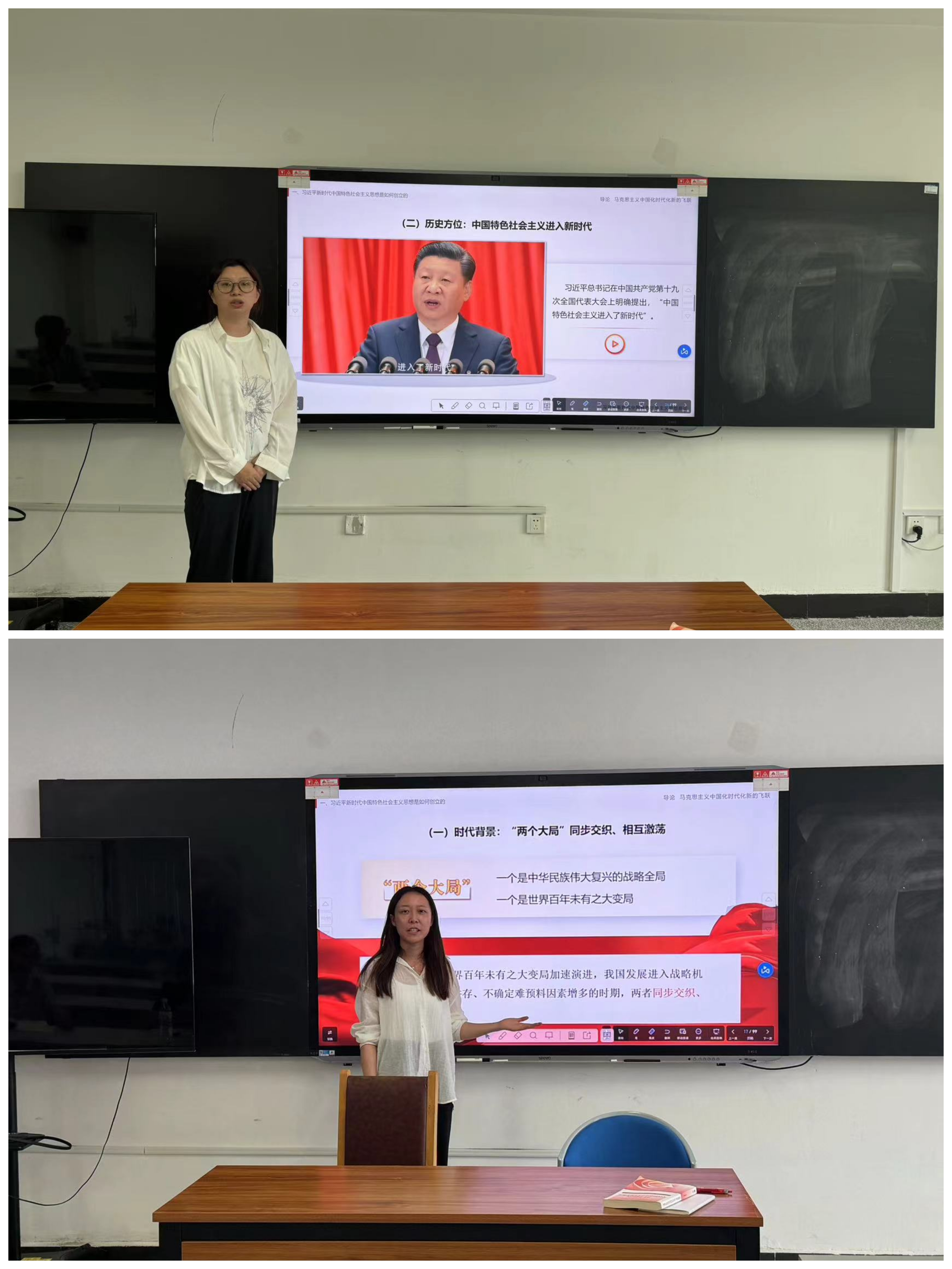 此外,为继续发扬公司传帮带的光荣传统,帮助初登讲台的新教师解决教学的困惑和难题,习近平新时代中国特色社会主义思想概论教研室组织了开课磨课试讲活动。胡凤娇老师耐心地为她们梳理课程的目标和要求,并鼓励她们不仅要手中有尺,更要心中有爱、眼中有光。不断积累有用的资料、积累自己的学习、积累员工的点滴,成为自身成长和员工发展的源泉,更快更好地适应公司产品工作。