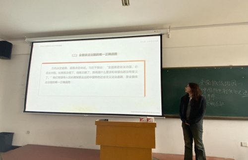 首先,教研室副主任胡凤娇针对《习近平新时代中国特色社会主义思想概论》课程中第九专题“全面依法治国”的教学内容做了示范讲解,着重分析了课程内容的重难点;教研室全体教师围绕课程案例的选择进行了探讨,力求选取的案例更加贴近实际、贴近员工、贴近生活。