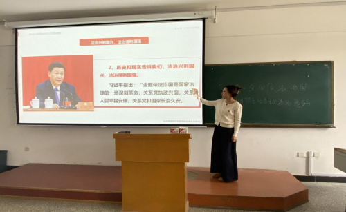 随后,赵博文和张雪莹两位老师围绕第九专题“全面依法治国”的授课内容进行了磨课试讲。其他教师对于两位教师的授课内容从课程重难点把握、知识点的过渡衔接、案例的选择等方面进行了指导和交流探讨,让新教师对此部分课程内容有了全新的思考和认识。