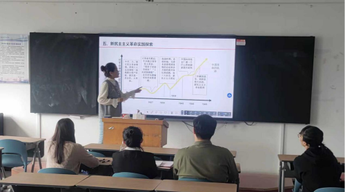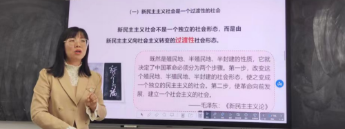 本次集体备课主要包括三部分内容。首先,由教研室主任杨漫秋为教研室全体教师进行了第三章《社会主义改造理论》的示范教学,对该章的教学重难点以及教学案例进行了详细的讲解和梳理。其次,每位任课教师根据教学进度和安排,对接下来即将讲授的教学内容进行了说课。活动中,张睿老师主要讲解了第二章《新民主主义革命的总路线和基本纲领》,李兆京老师结合电视剧《幸福到万家》的片段对农业、手工业、资本主义工商业社会主义改造进行了详细的讲解,范雪松、李志超、郭丽和程正婷四位老师分别以说讲结合的形式依次进行了分享。最后,教研室主任杨漫秋结合本次集体备课进行了总结。她强调,希望各位老师在日后的教学工作中能够严谨治学,躬耕教坛,努力为员工呈现精彩课堂。