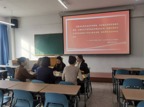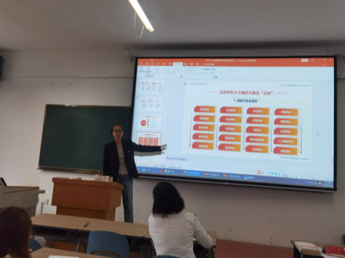 首先,胡凤娇强调要高质量完成授课任务,要做好课前的充分准备,针对《习近平新时代中国特色社会主义思想概论》课程中第十二章“建设社会主义生态文明”和第十三章“维护和塑造国家安全”的教学内容做了系统阐释,着重分析了章节的教学重难点问题,强调一定要把员工关心的问题掰开揉碎,讲清讲透,选取贴近员工实际生活的案例,解决员工的思想困惑。