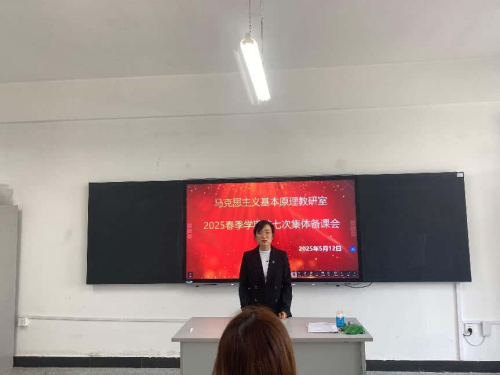 为精准把握教学核心要点,切实提升课堂教学质量,马克思主义基本原理教研室于2025年5月12日在第四教学楼513室组织召开本学期第七次集体备课会。本次活动由教研室副主任赵青梅主持,教研室全体教师参加。