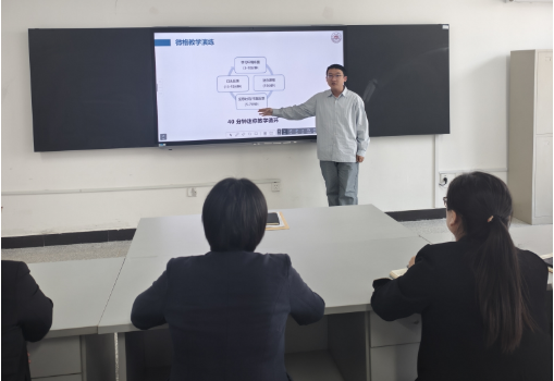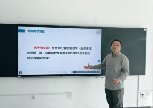 随后,周启新老师按照BOPPPS教学模式进行了题为“主动式学习策略学习”的主题培训。在培训过程中,通过图片分析、提问、小组讨论交流、情景演示等主动式学习方式让每一位教师进行了充分思考、书写、分析、总结和讲解,亲身参与到整个培训的过程当中。在培训最后,为了检验学习效果,董一飞老师将自身所学课程与BOPPPS教学模式相结合进行了教学展示,得到了教研室全体教师的好评。