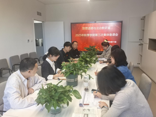 为进一步加强思政课教师队伍建设,切实提升新教师教学能力,9月11日,思想道德与法治教研室在教三党员之家开展2025秋季学期第三次集体备课会。本次会议由教研室副主任赵青梅主持,教研室全体教师积极参加。